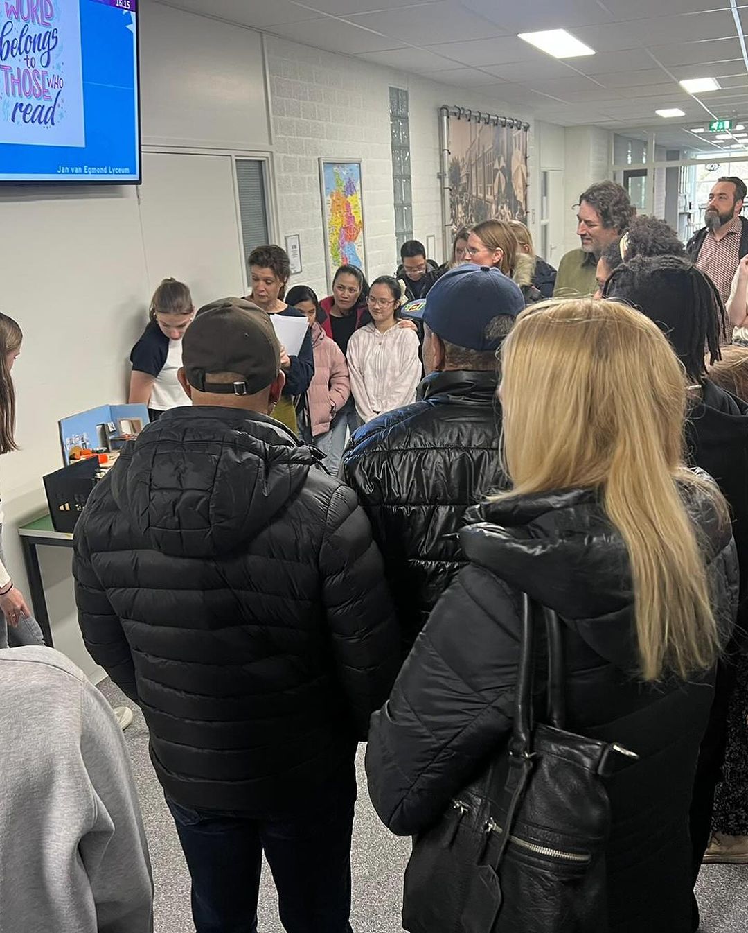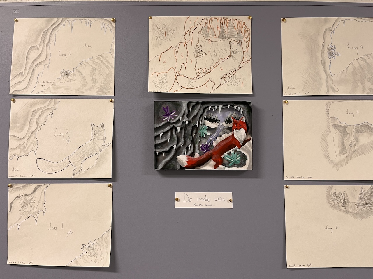 Vandaag hebben de leerlingen van onze kunstklas een expositie georganiseerd om het einde van hun driejarige reis in de kunstklas te vieren. Ze hebben hun creatieve reis afgesloten met het behalen van een certificaat.