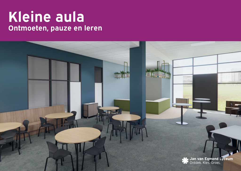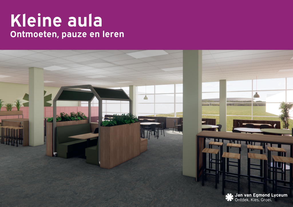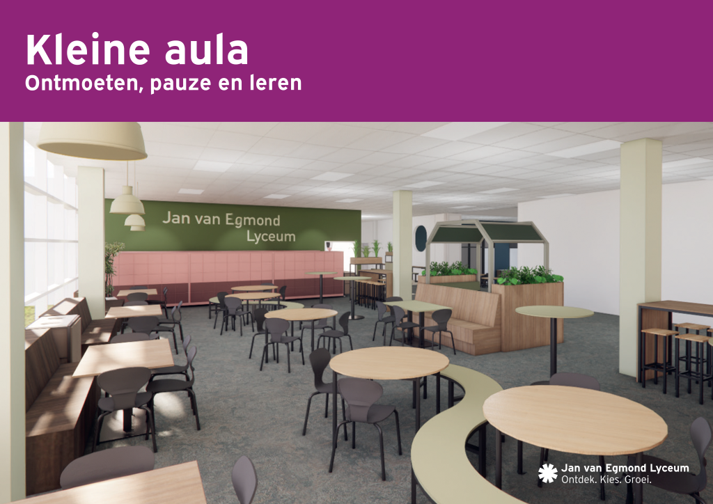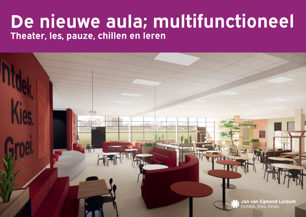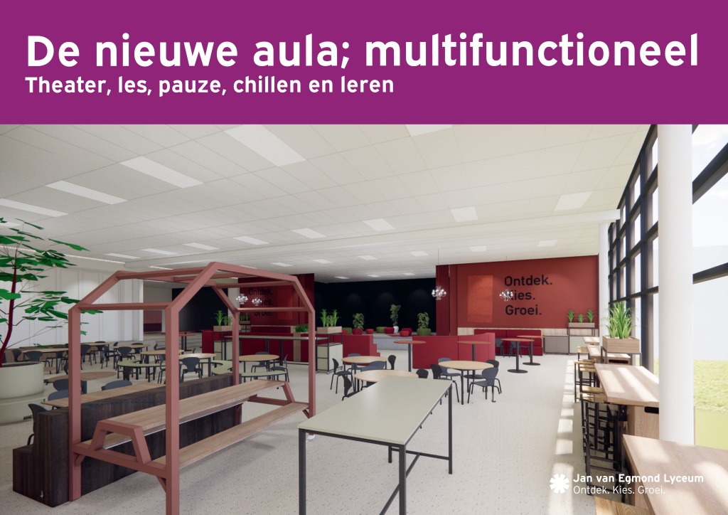 Zowel de kleine als de grote aula worden volledig vernieuwd en zien er binnenkort prachtig uit! Klik op de afbeeldingen hieronder om alvast een indruk te krijgen van het resultaat.